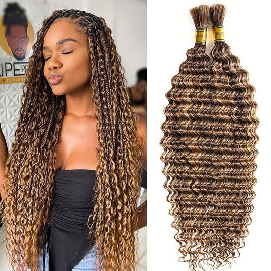 Deep Wave Human Hair Bulk For Braiding Boho Braids Crochet Braid 2 Bundle Bulk
