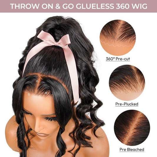 Glueless Ready To Wear 360 Lace Front Human Hair Wigs Pre Styled Wig