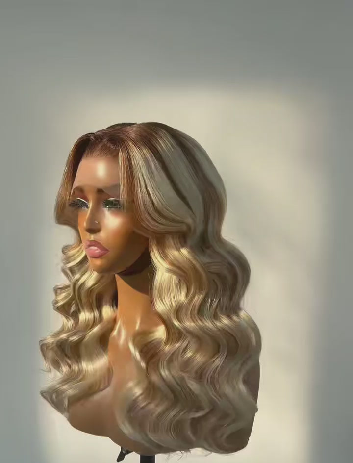 Raw Vietnamese Blonde Highlights With Dark Roots Wavy Curly Glueless Lace Front Ready To Wear Wig 300% Density Wig Lagos M-Hairline