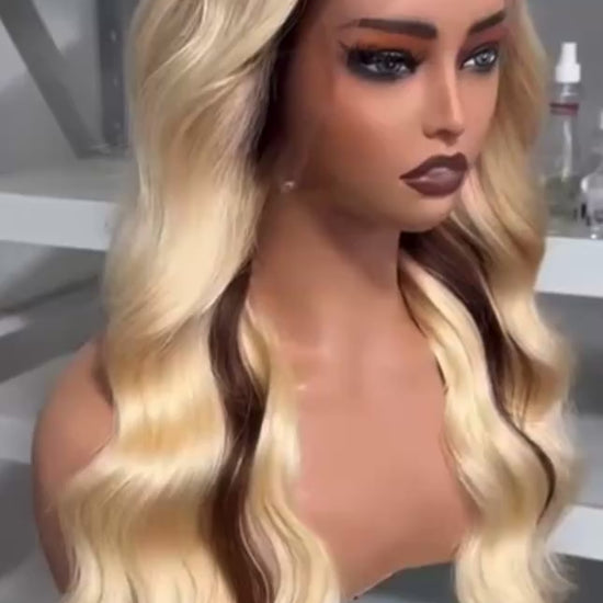 Lagos M Hairline Pre-Styled Ready To Wear Wavy Blonde With Dark Roots 250% Glueless Pre-Styled Wig